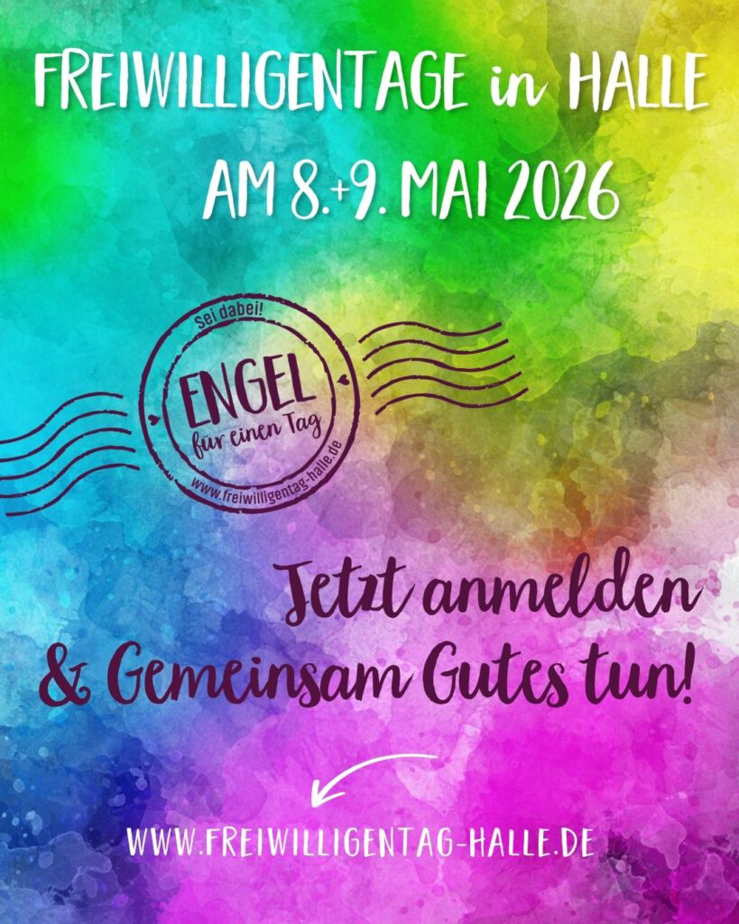 Am 8. und 9. Mai 2026 finden wieder die Freiwilligentage in Halle statt. An diesen zwei Tage gibt es viele Mitmachaktionen in der ganzen Stadt für Groß und Klein . Wir stellen euch ein paar Aktionen vor und zeigen euch, wie man sich dafür anmelden kann.